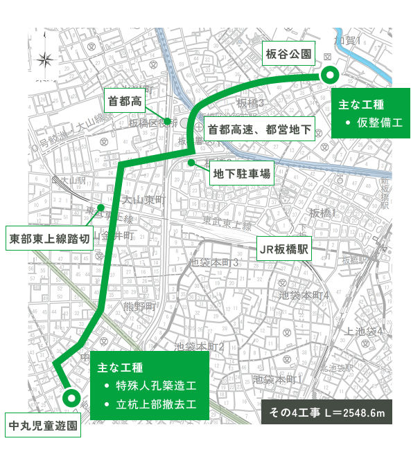 | 施工区間 | 東京都板橋区4丁目55(板谷公園)~東京都板橋区南町22(中丸児童遊園) |